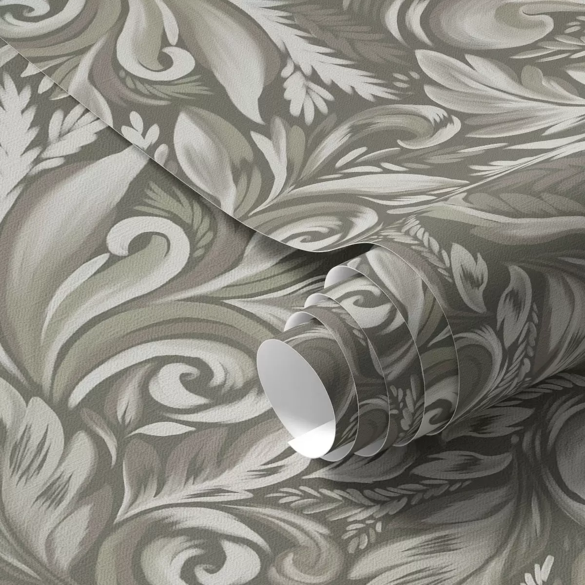 Papel tapiz Volutas de acanto en una paleta de colores beige oliva Nr. a00501
