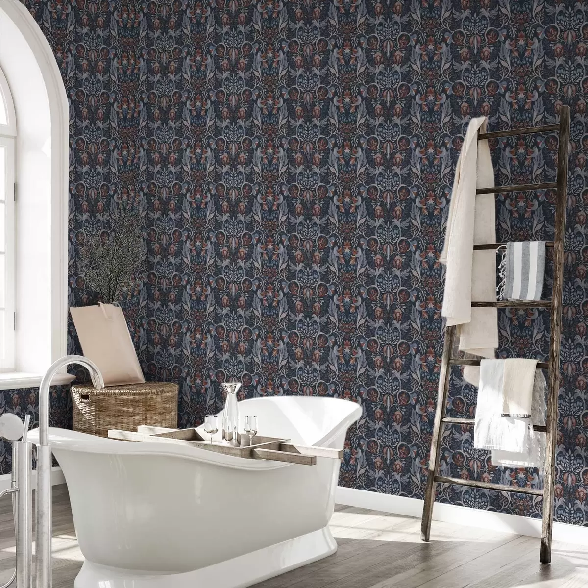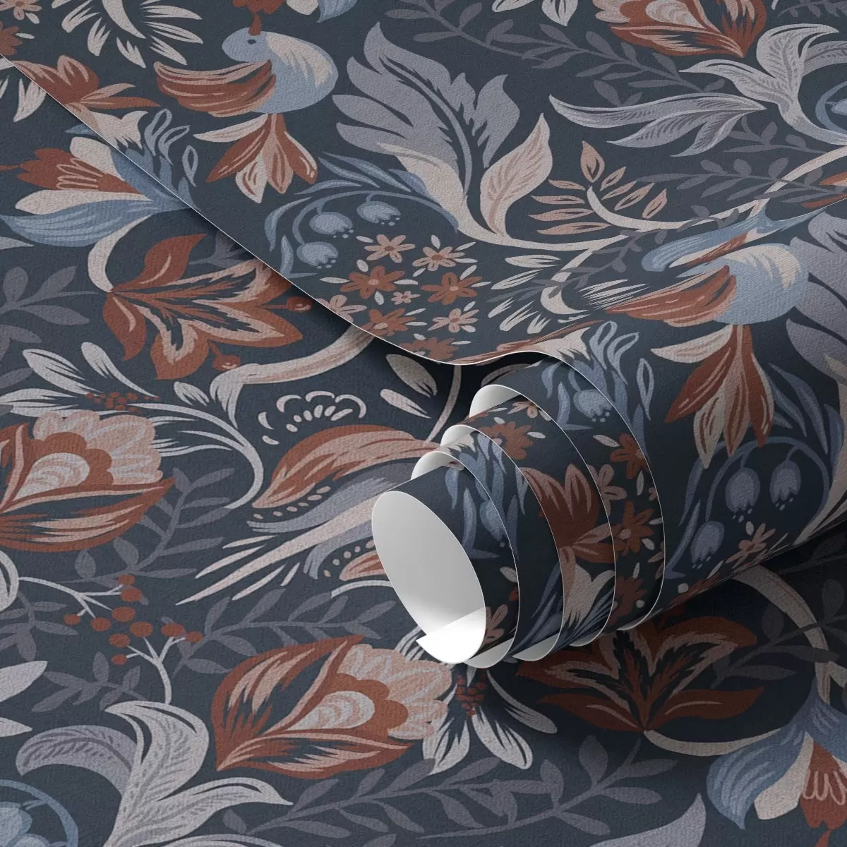Papel tapiz Adorno popular con pájaros, índigo intenso Nr. a00502v1