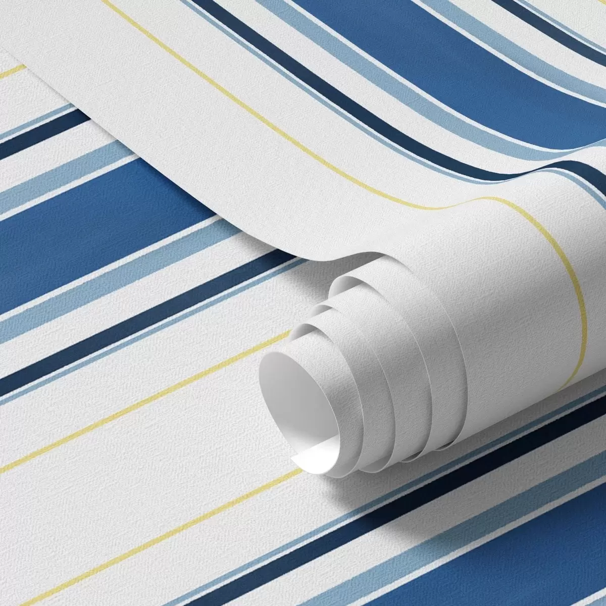 Papel tapiz Rayas azules anchas con finas líneas amarillas Nr. a00522