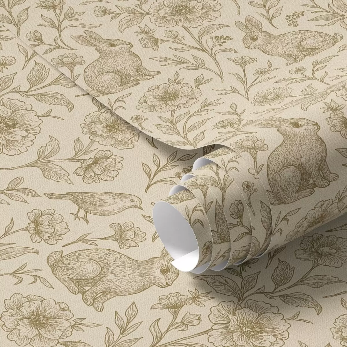 Papel tapiz Conejos y pájaros en un estampado floral Nr. a00571