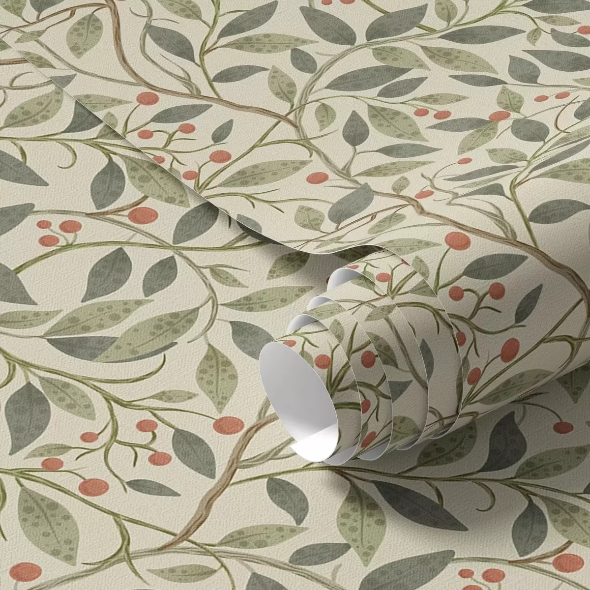 Papel tapiz Ramas de olivo con bayas sobre un fondo cálido y claro Nr. a00573