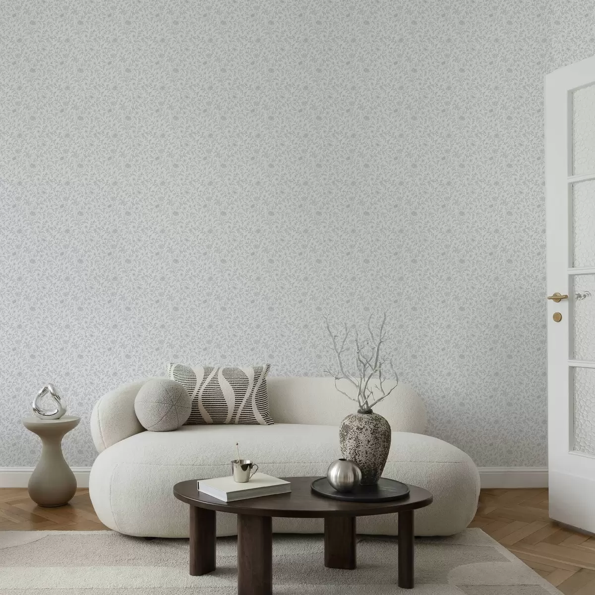Papel tapiz Delicadas flores dibujadas con trazos finos sobre un fondo blanco roto Nr. a00576