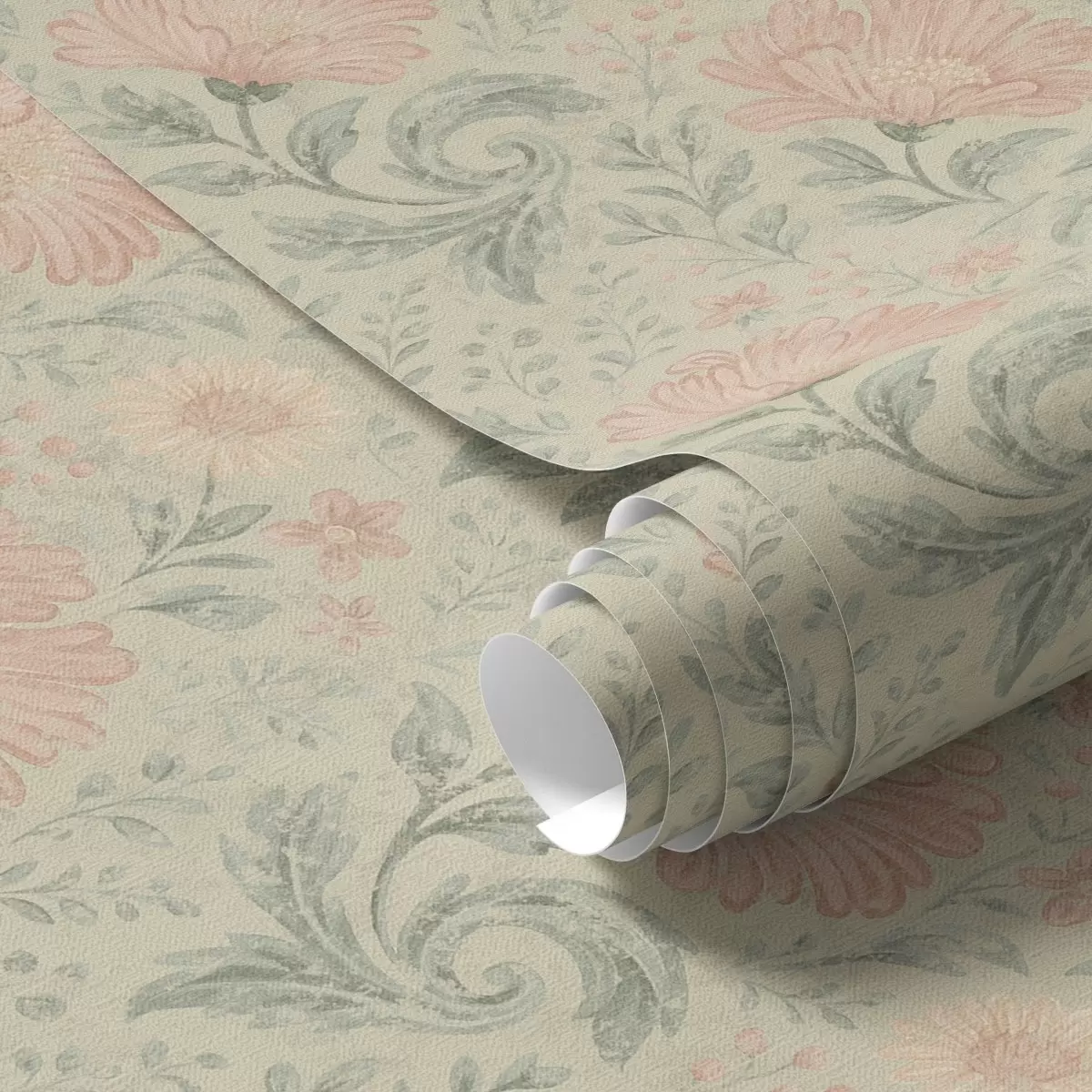 Papel tapiz Flores grandes de melocotonero vintage con hojas de salvia Nr. a00580