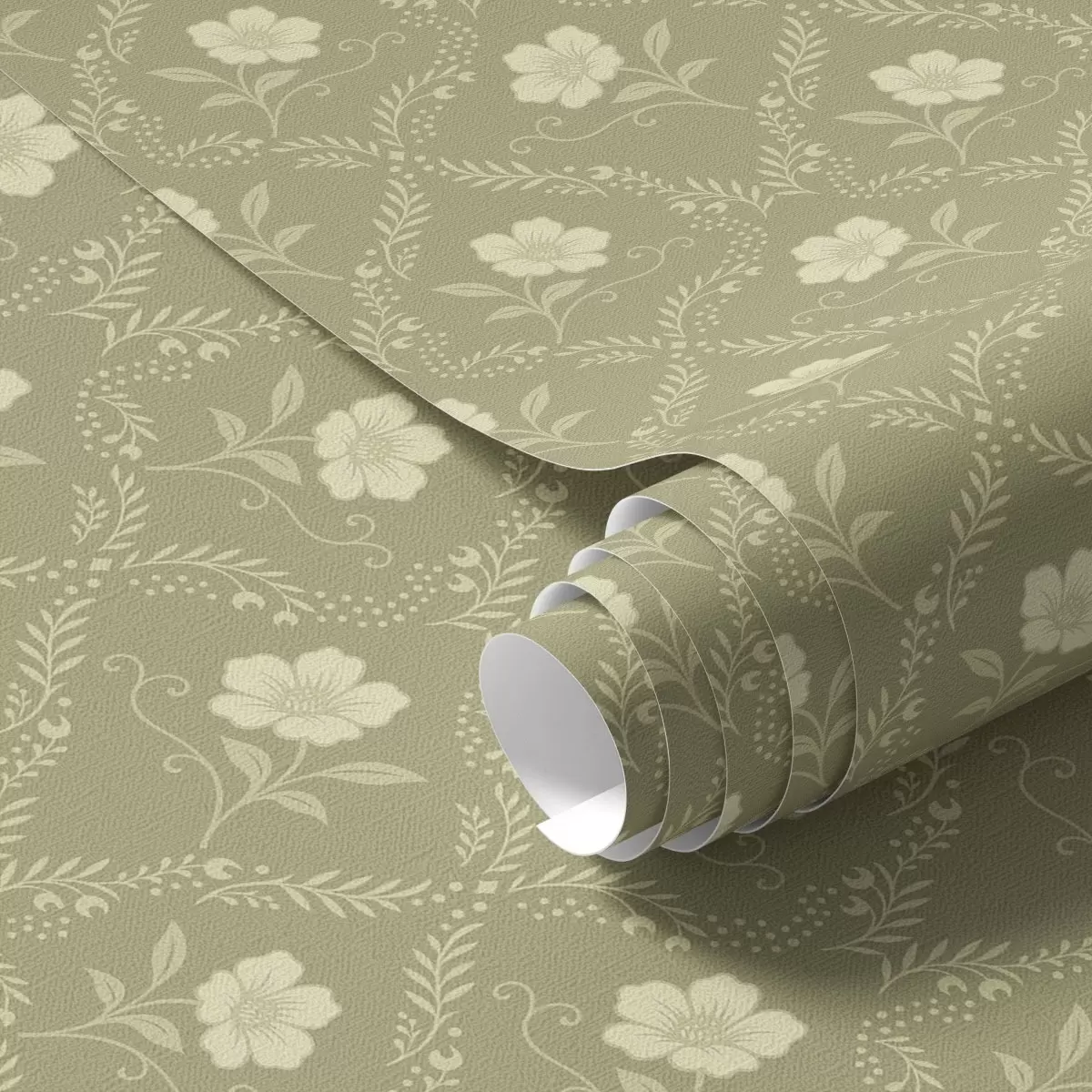 Papel tapiz Enrejado de olivo con flores color crema, adorno retro Nr. a00585