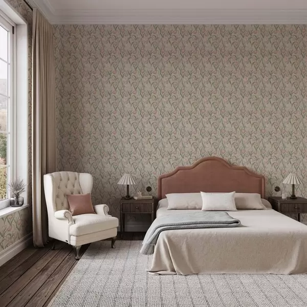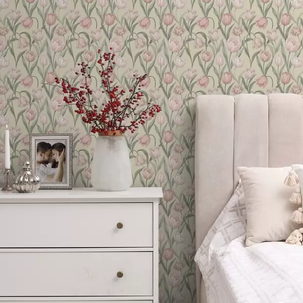 Papel tapiz Tulipanes rosa pálido sobre un suave fondo beige Nr. a00589