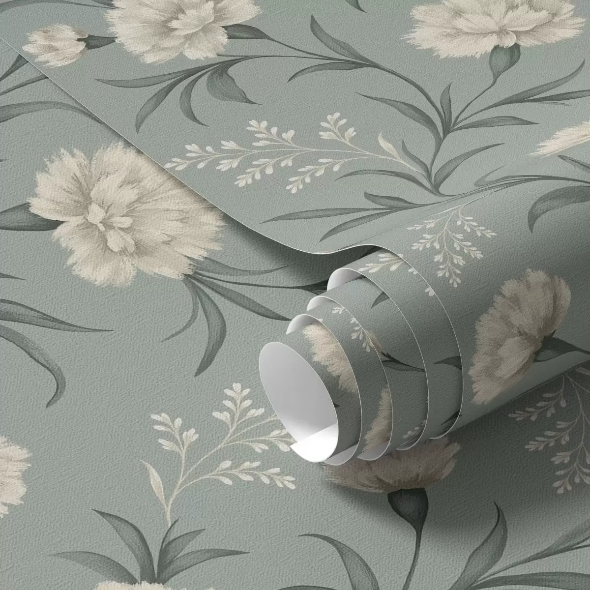 Papel tapiz Claveles en polvo sobre fondo gris verdoso, estampado refinado Nr. a00610