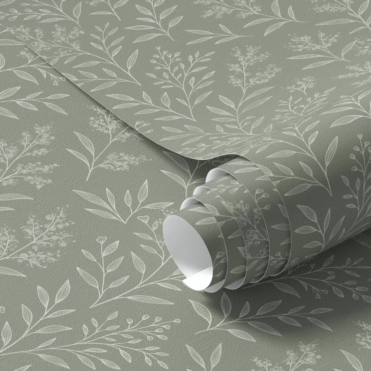 Papel pintado Salvia verde: finas hierbas e inflorescencias, delicado diseño a00611