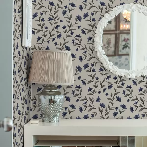 Papel tapiz Campanillas y vegetación gris sobre un fondo claro Nr. a00622v1