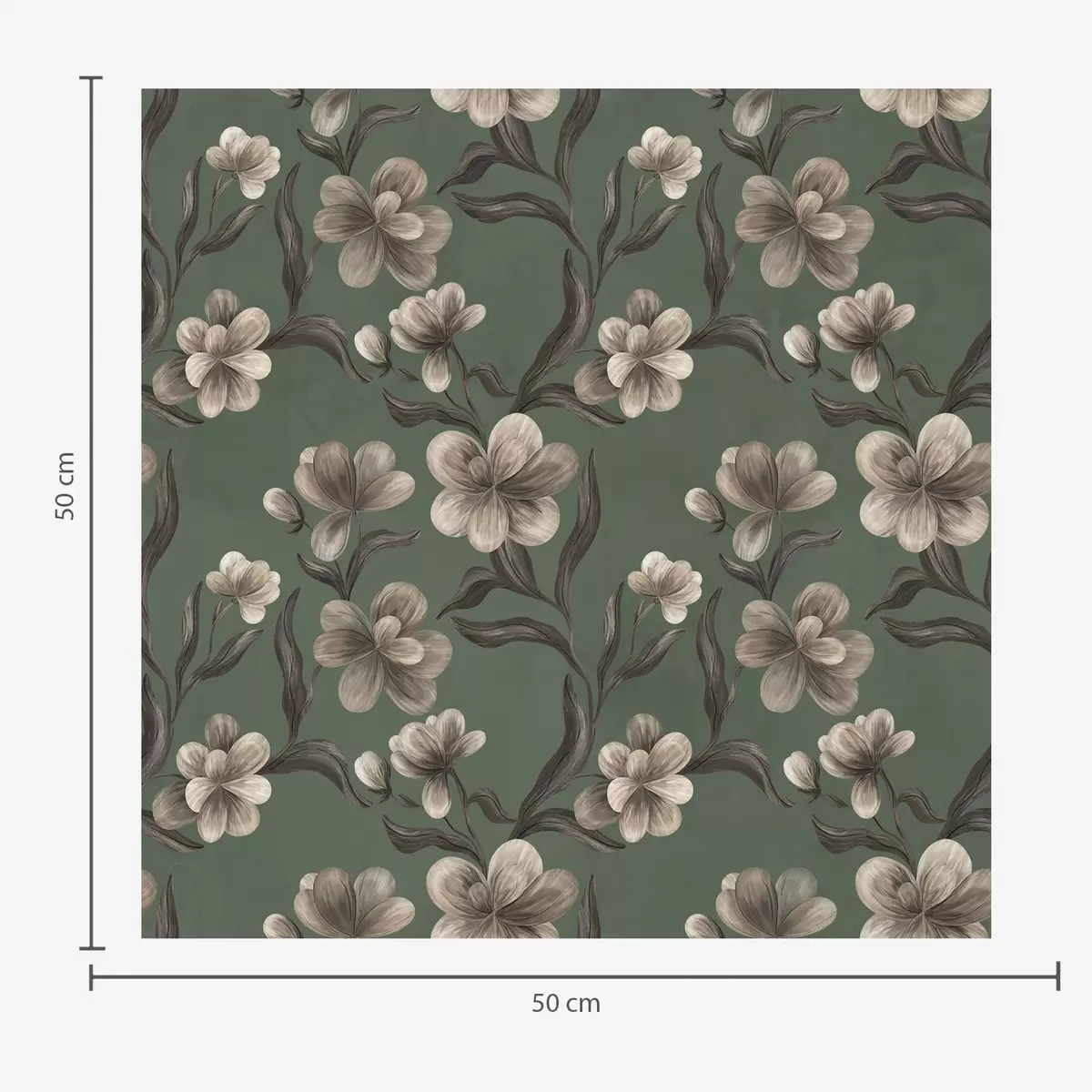Papel tapiz Flores beige sobre un fondo verde intenso Nr. a00626v3