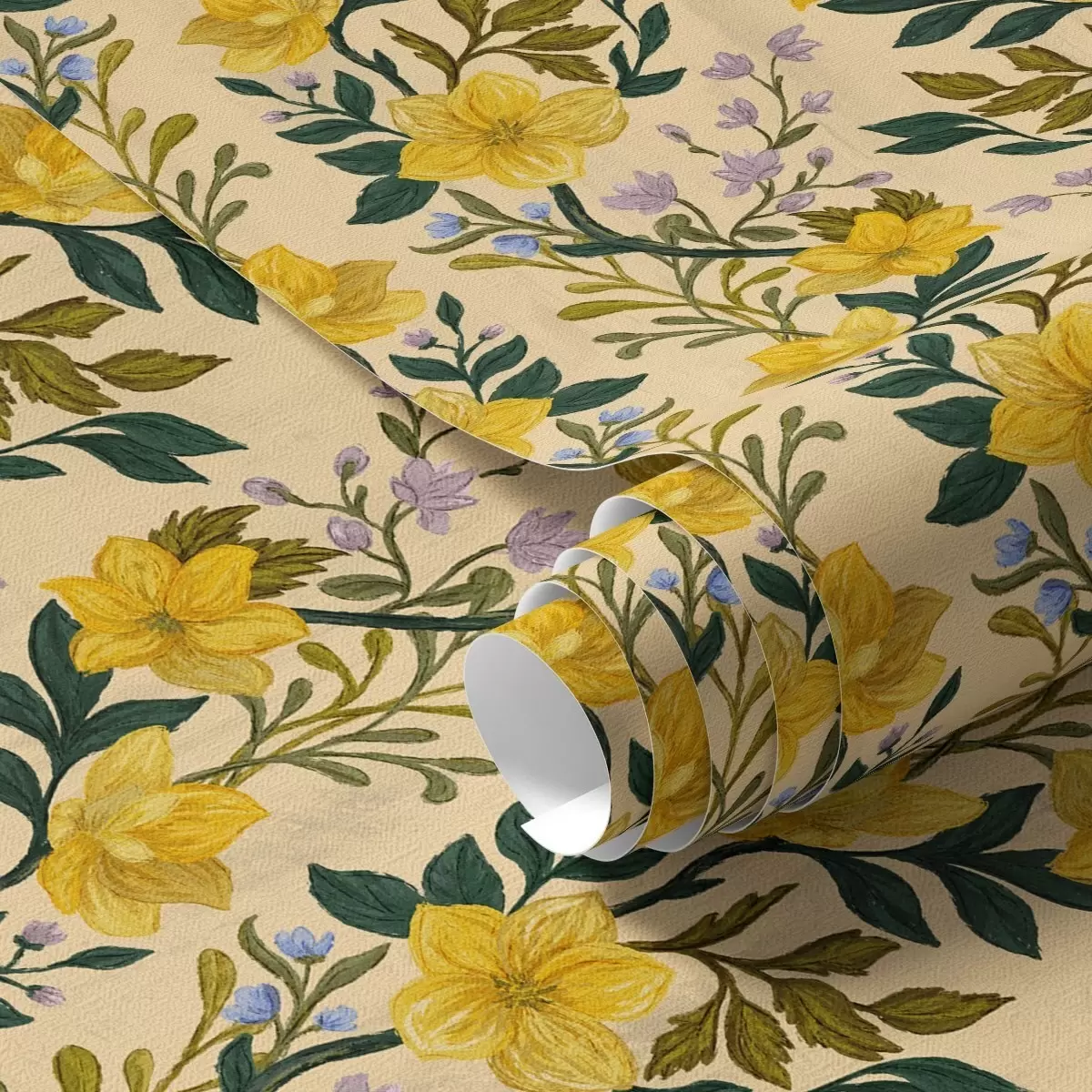 Papel tapiz Flores amarillas en guirnaldas verticales sobre fondo crema Nr. a00632