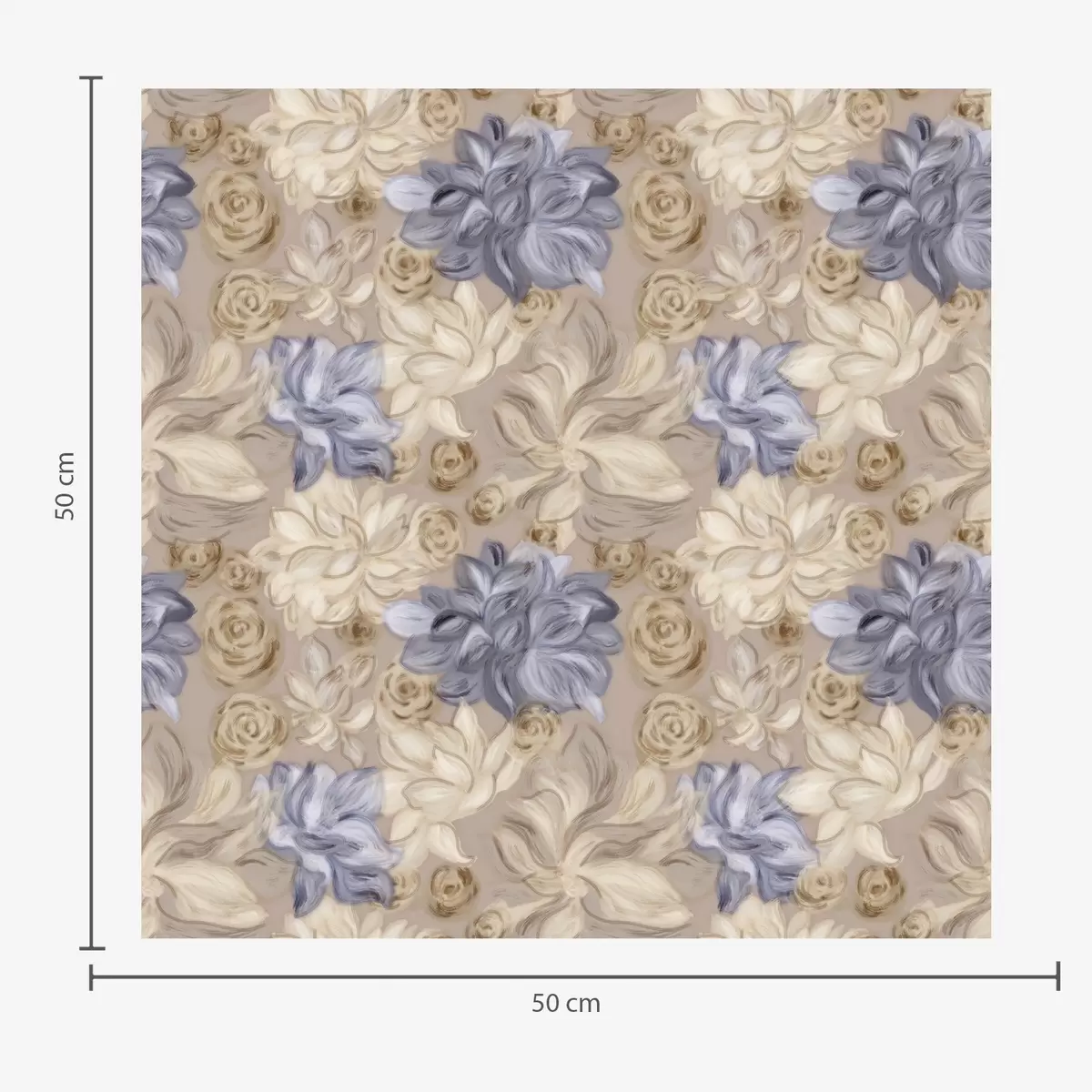 Papel tapiz Crema exuberante y flores azules en una paleta de colores pastel Nr. a00634