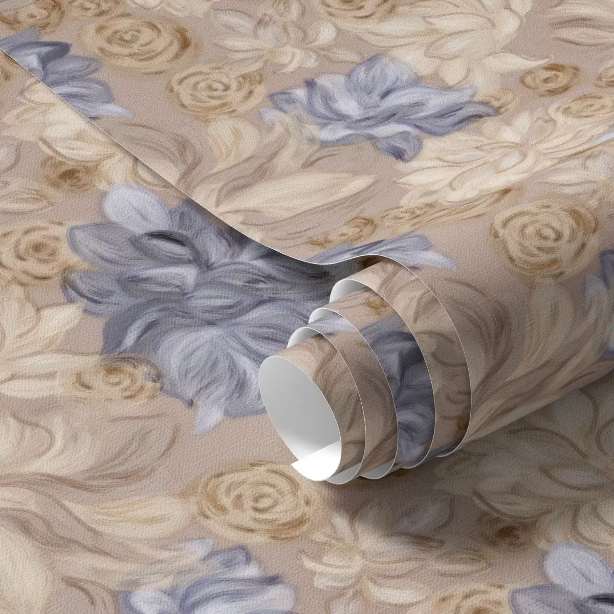 Papel tapiz Crema exuberante y flores azules en una paleta de colores pastel Nr. a00634