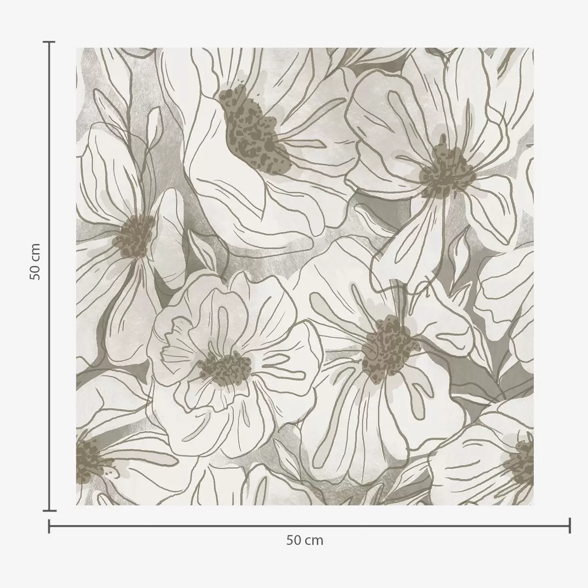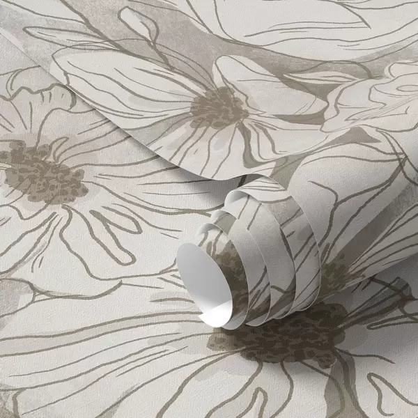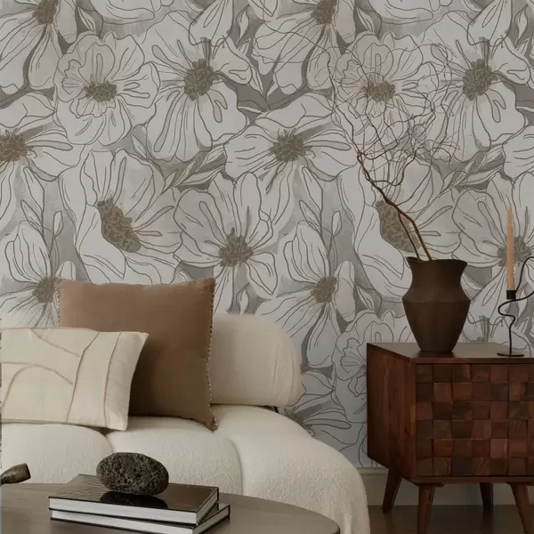 Papel tapiz Flores lineales en una paleta monocromática de tonos beige y gris Nr. a00636
