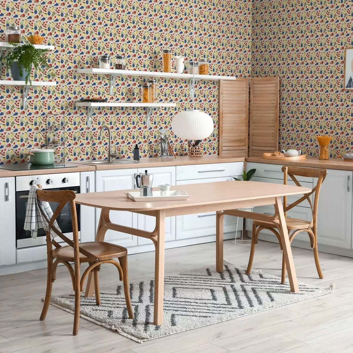 Papel tapiz Patrón vibrante con frutas, ramas y jarrones Nr. a00637