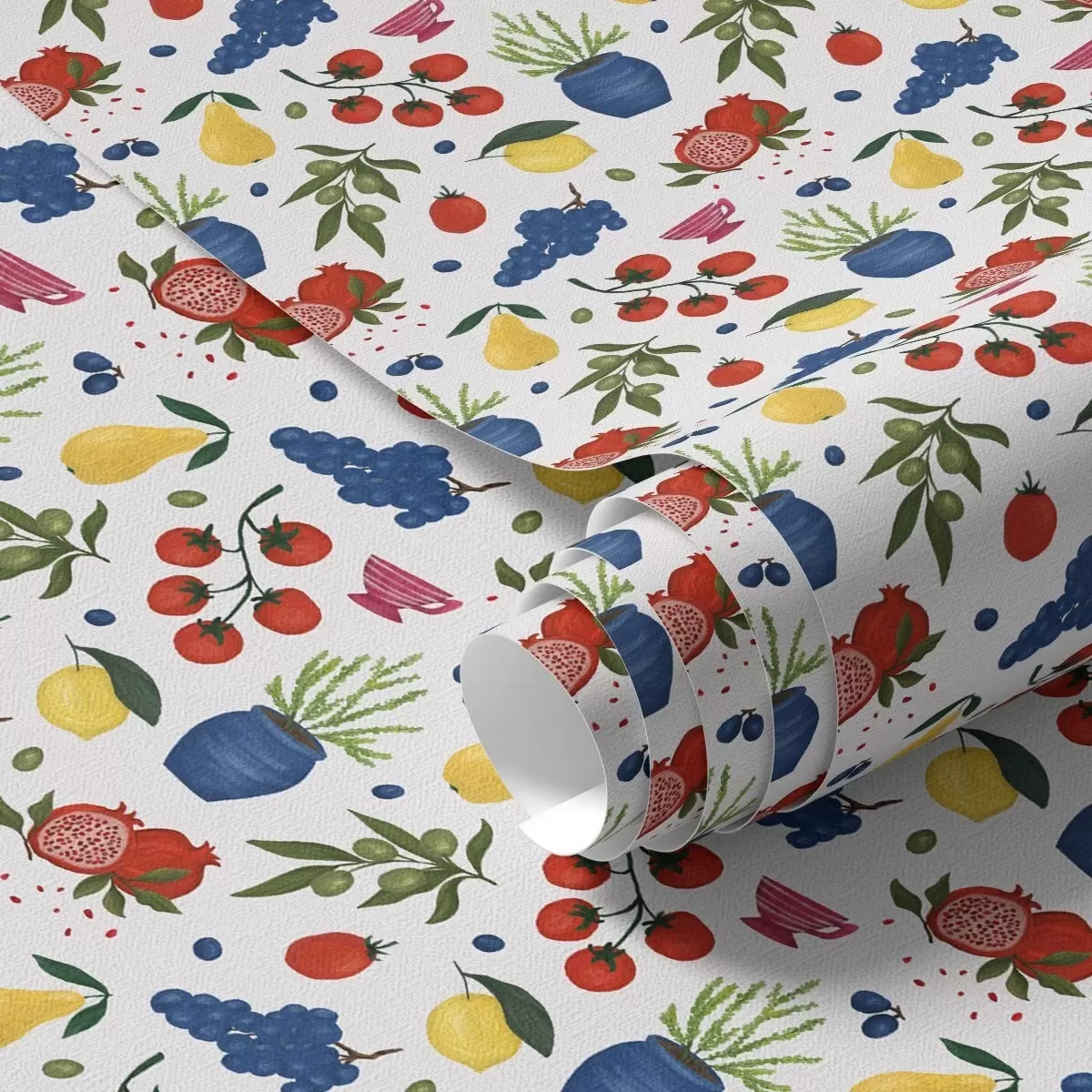 Papel tapiz Estampado botánico de frutas brillantes sobre fondo blanco Nr. a00637v1