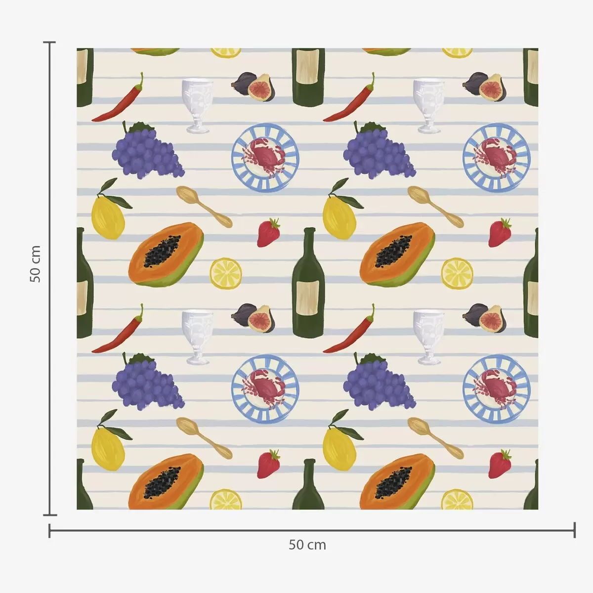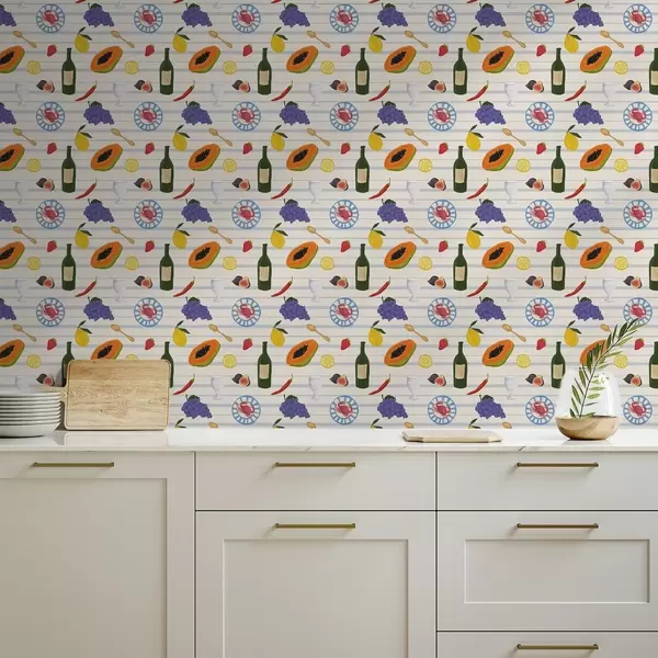 Papel tapiz Lámina de cocina con frutas, vasos y platos Nr. a00638
