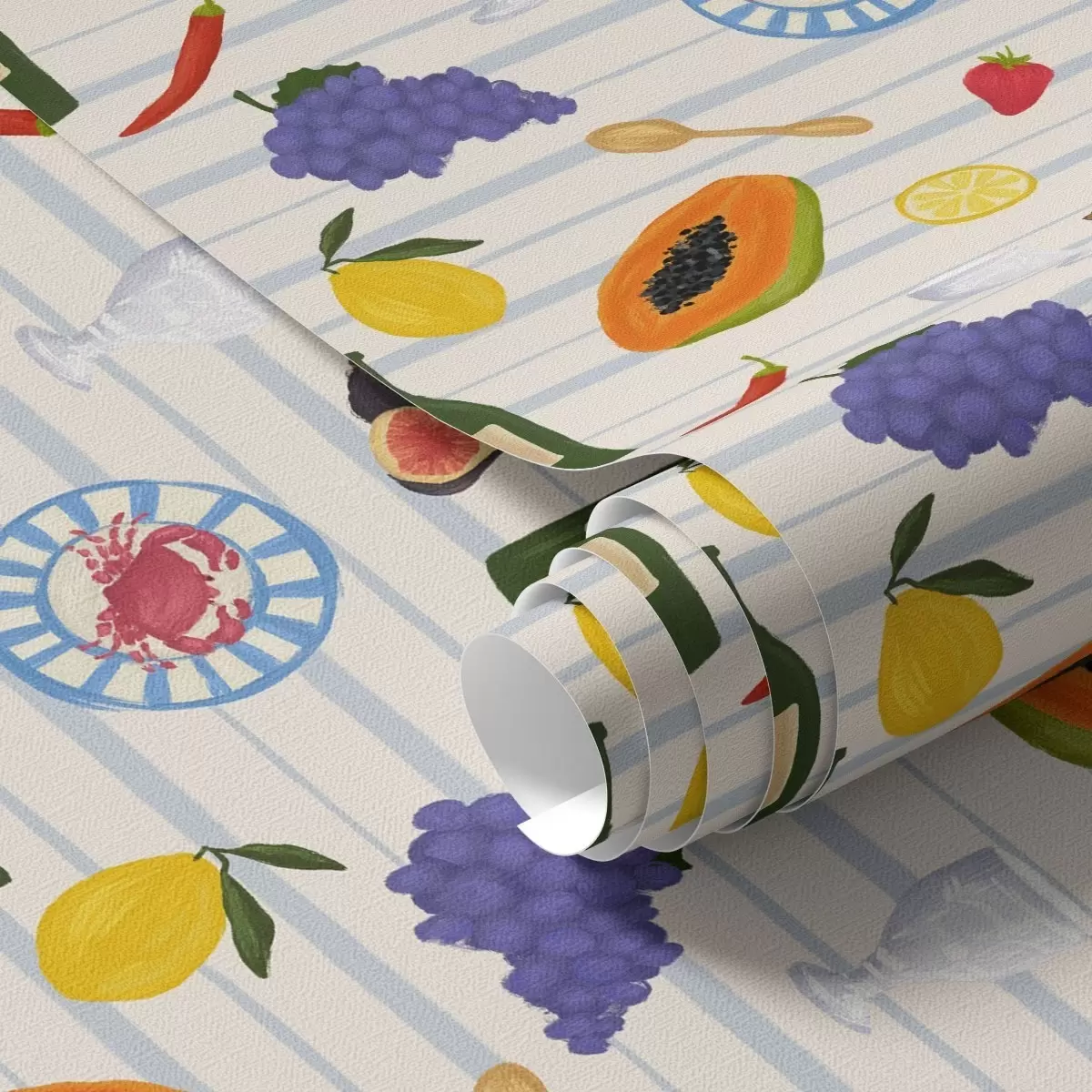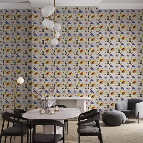 Papel tapiz Lámina de cocina con frutas, vasos y platos Nr. a00638