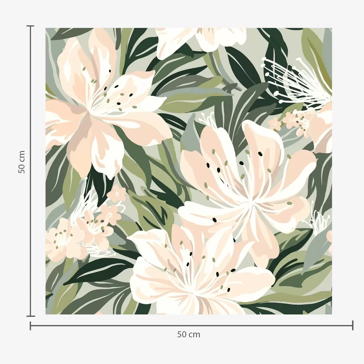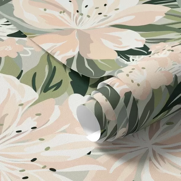 Papel tapiz Grandes flores color crema sobre fondo verde claro Nr. a00646