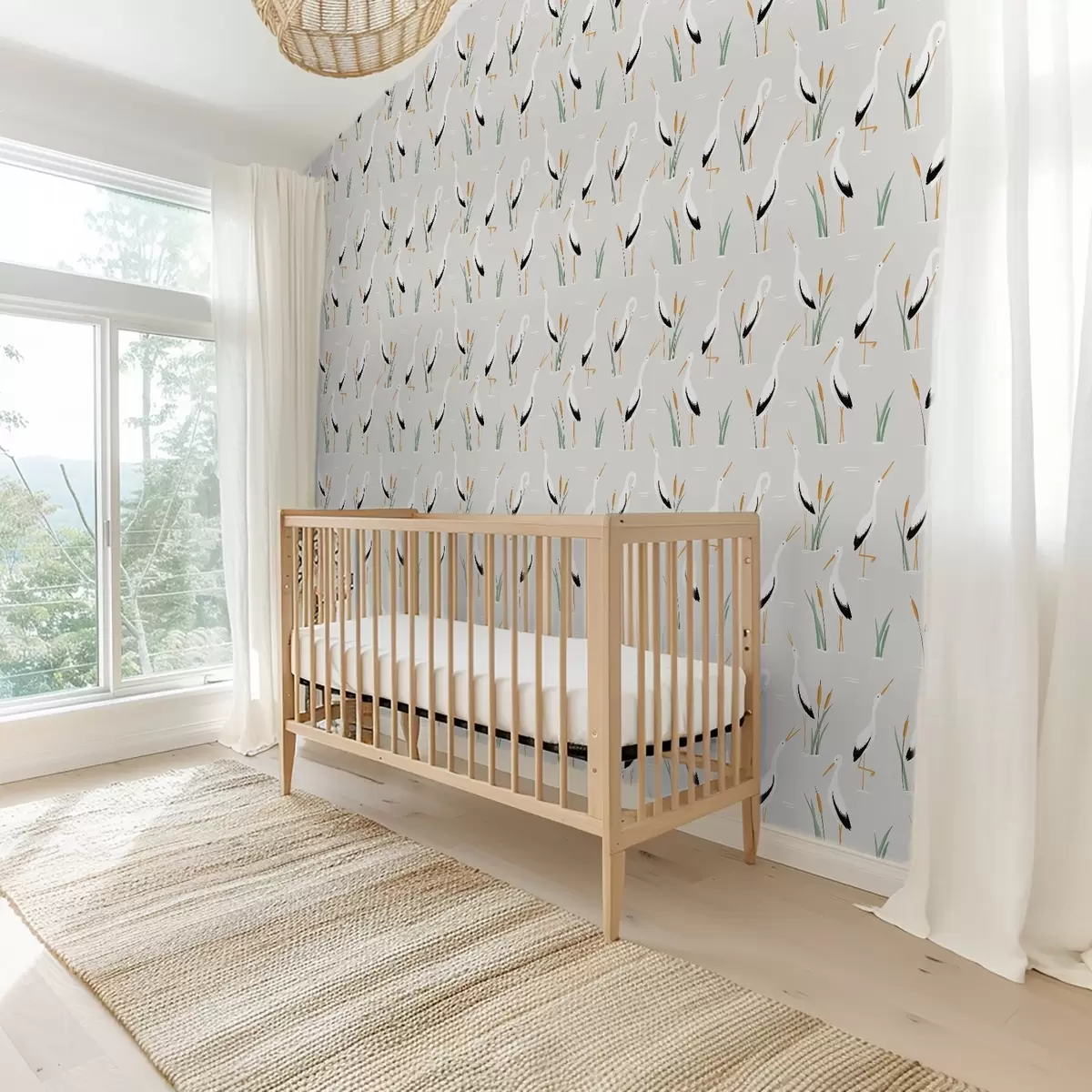 Papel tapiz Garzas entre juncos sobre un fondo gris claro Nr. a00650
