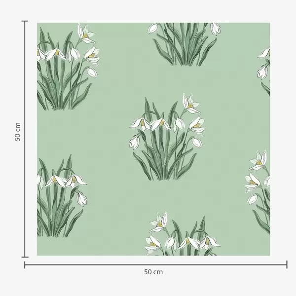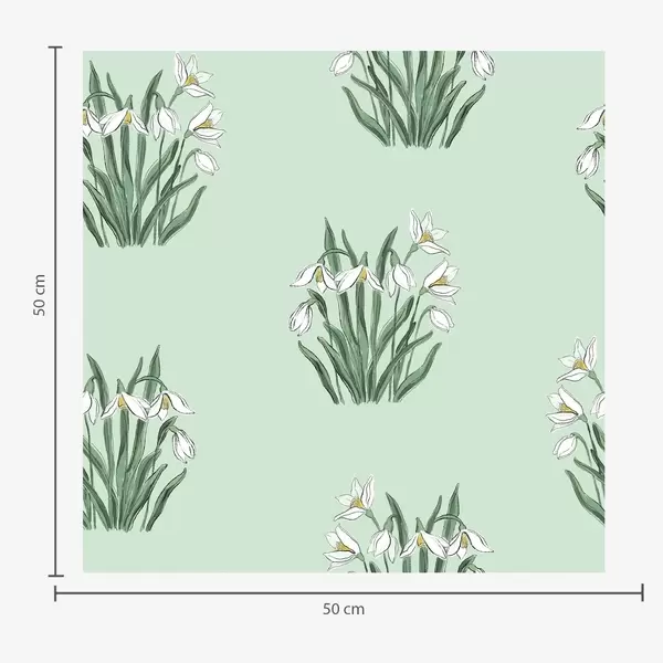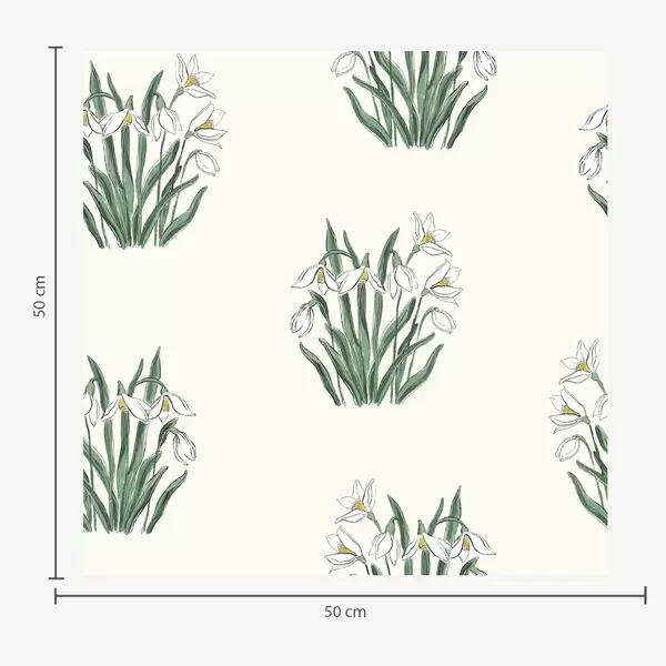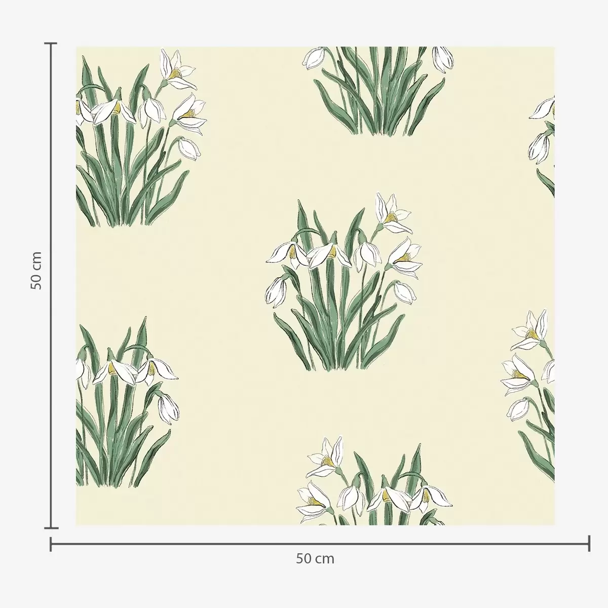 Papel tapiz Campanillas de invierno con hojas verdes sobre fondo crema Nr. a00651v2