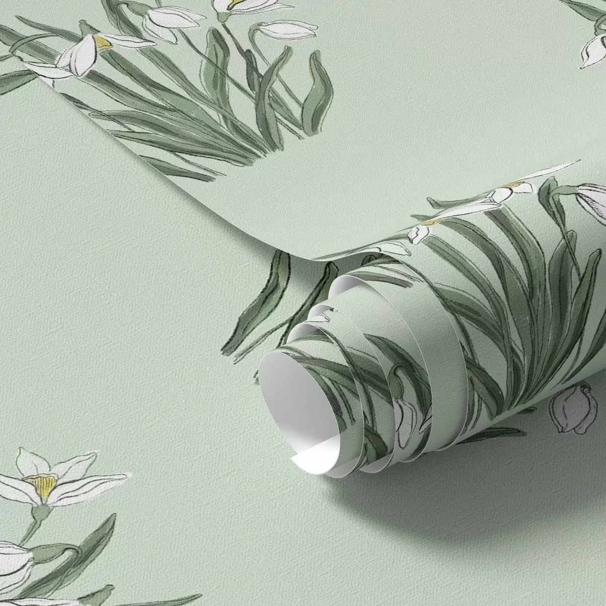 Papel tapiz Campanillas de invierno con hojas verdes sobre un fondo amarillo cálido Nr. a00651v3