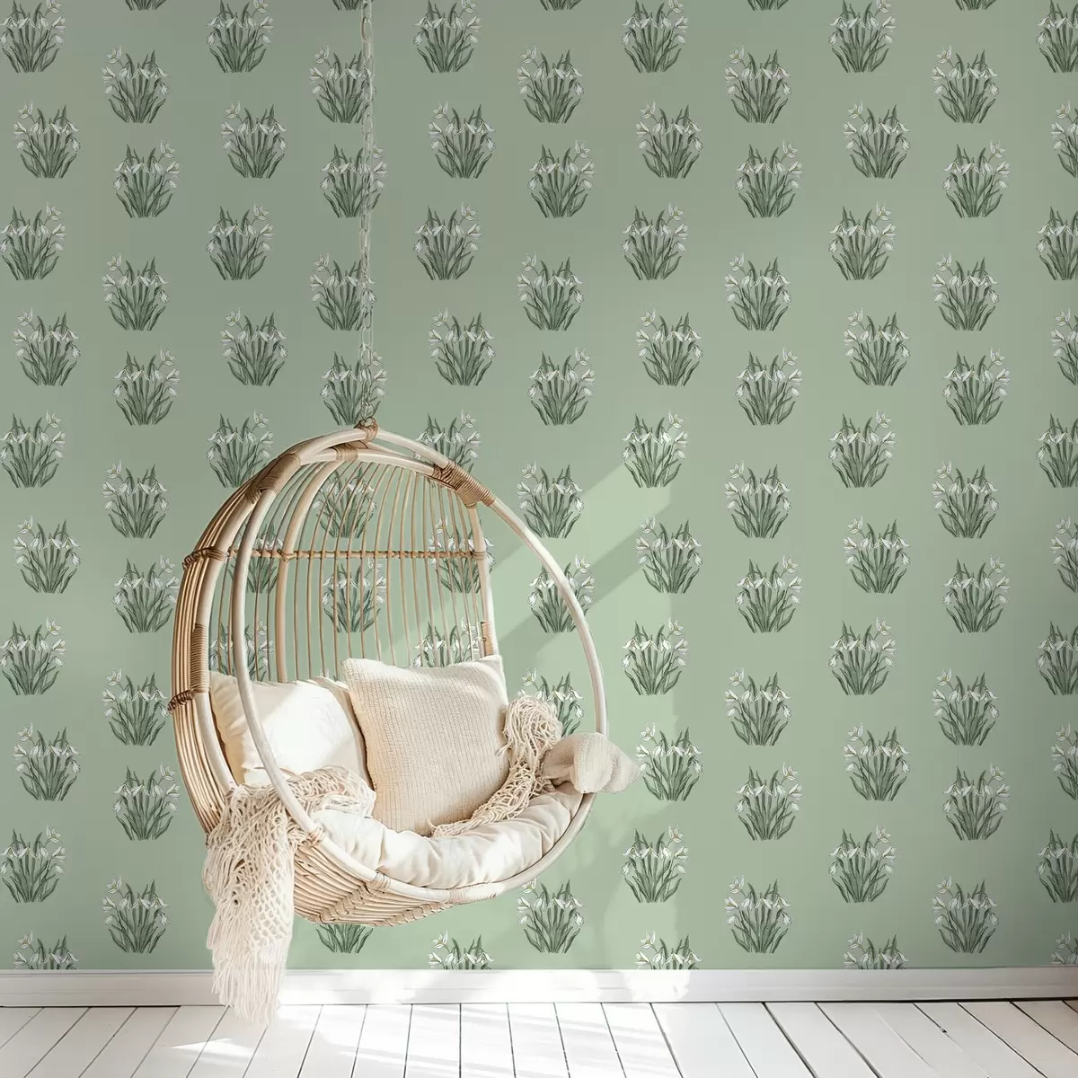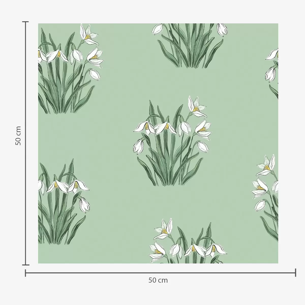 Papel tapiz Campanillas de invierno con hojas verdes sobre un fondo verde suave Nr. a00651v4