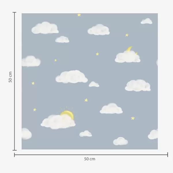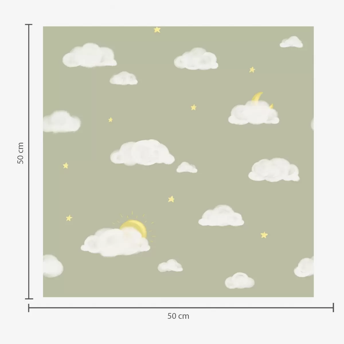 Papel tapiz Nubes suaves, estrellas y sol sobre un fondo gris verdoso Nr. a00652v1