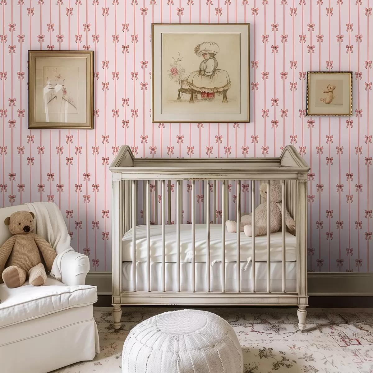 Papel tapiz Cintas verticales con lazos, fondo rosa empolvado Nr. a00653v2