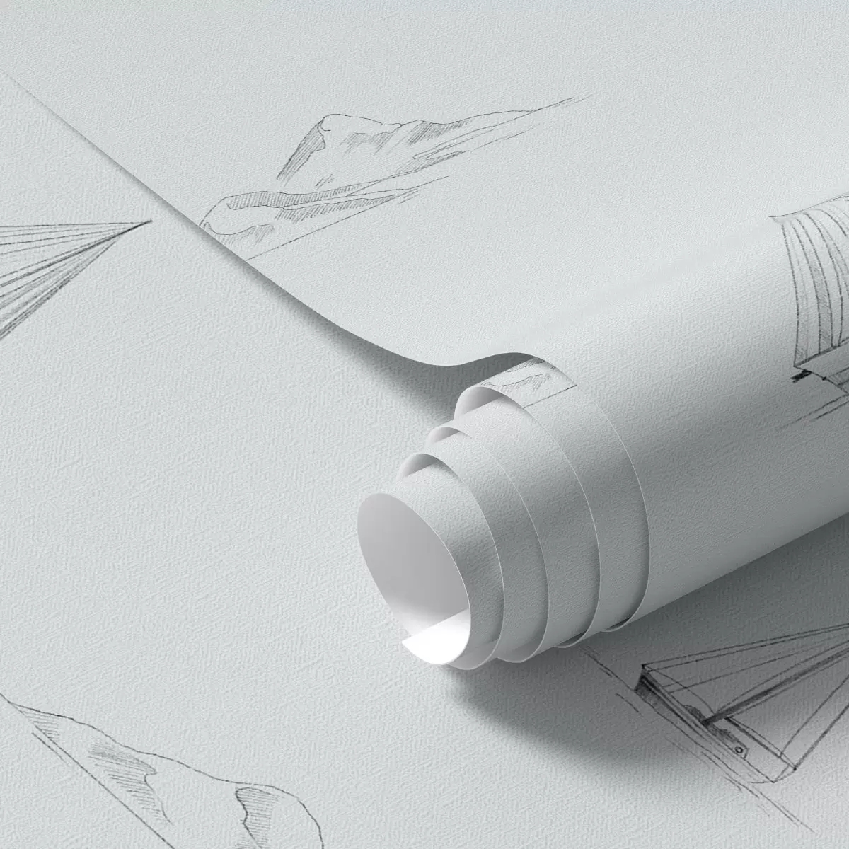 Papel tapiz Dibuja yates e islas, con un fondo azul grisáceo fresco Nr. a00654