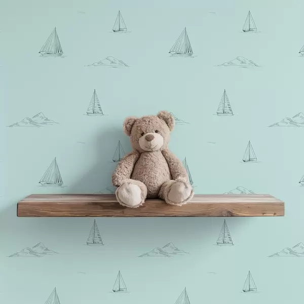 Papel tapiz Bocetos de yates e islas, fondo verde menta Nr. a00654v4