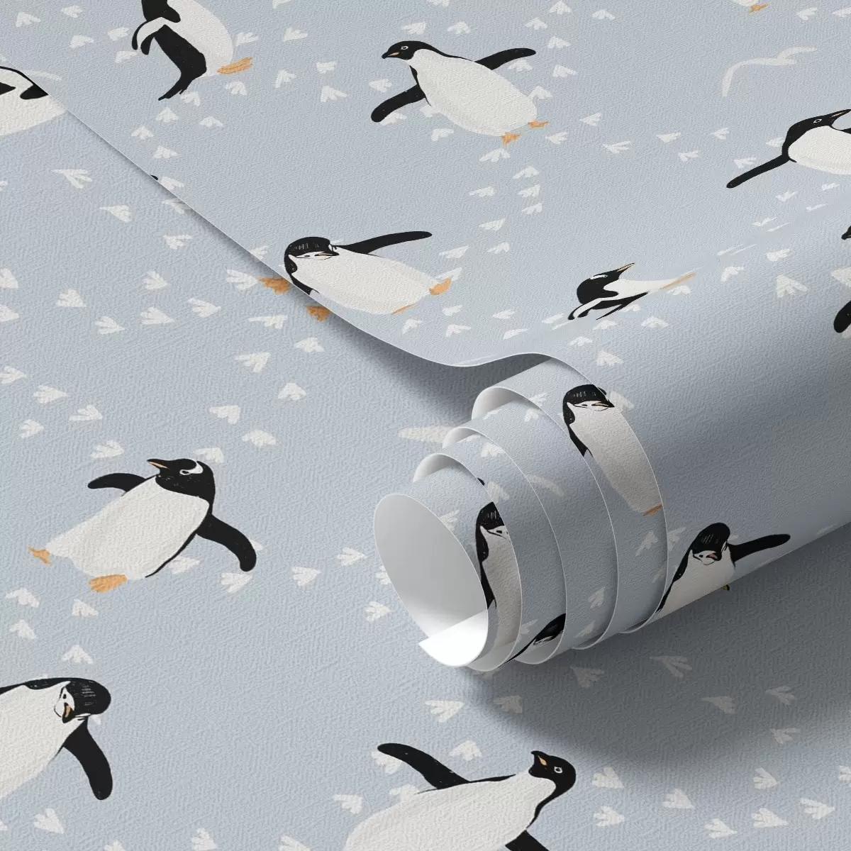 Papel tapiz Pingüinos sobre fondo azul claro, ritmo de huellas Nr. a00655v2