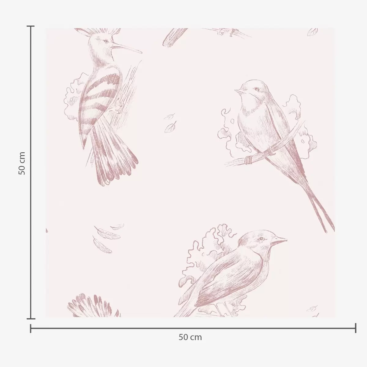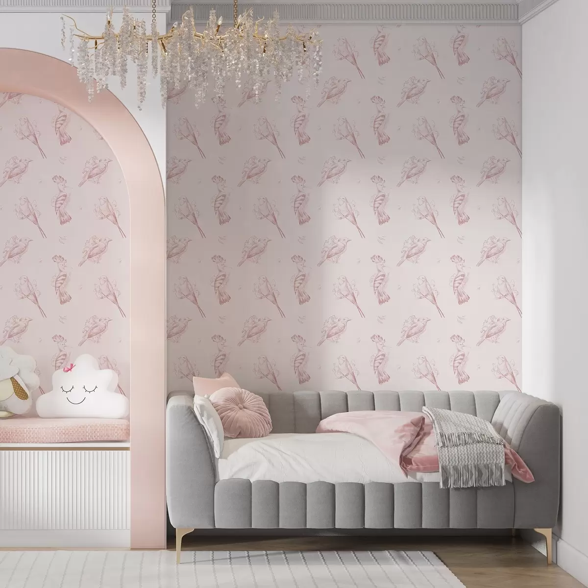 Papel tapiz Toile de pájaros: bocetos de pájaros, fondo rosa suave Nr. a00656