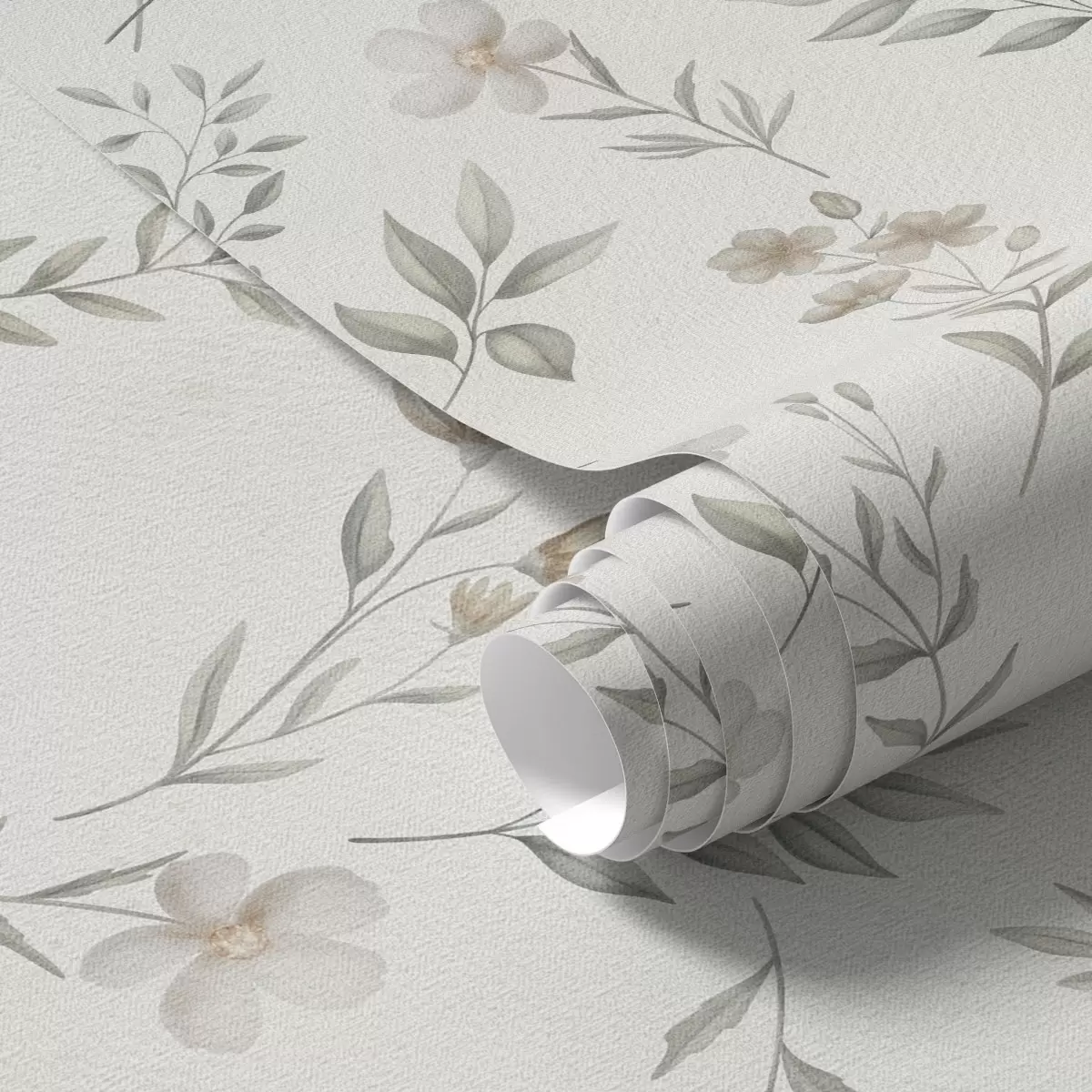 Papel tapiz Pequeñas ramitas y flores pintadas con acuarela sobre un fondo claro Nr. a00665