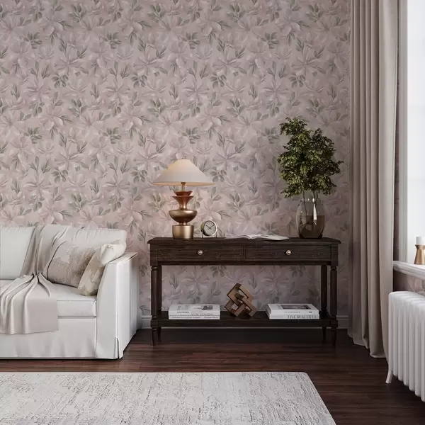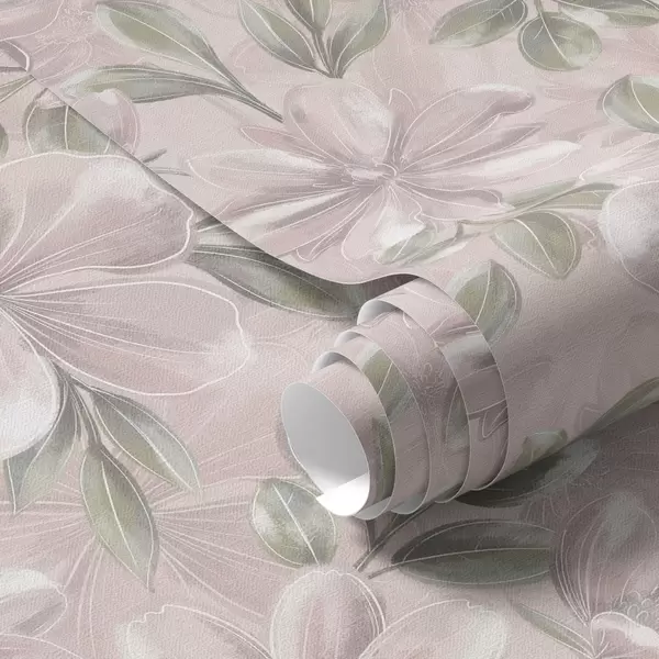 Papel pintado Flores rosas con hojas delicadas sobre un fondo suave a00675