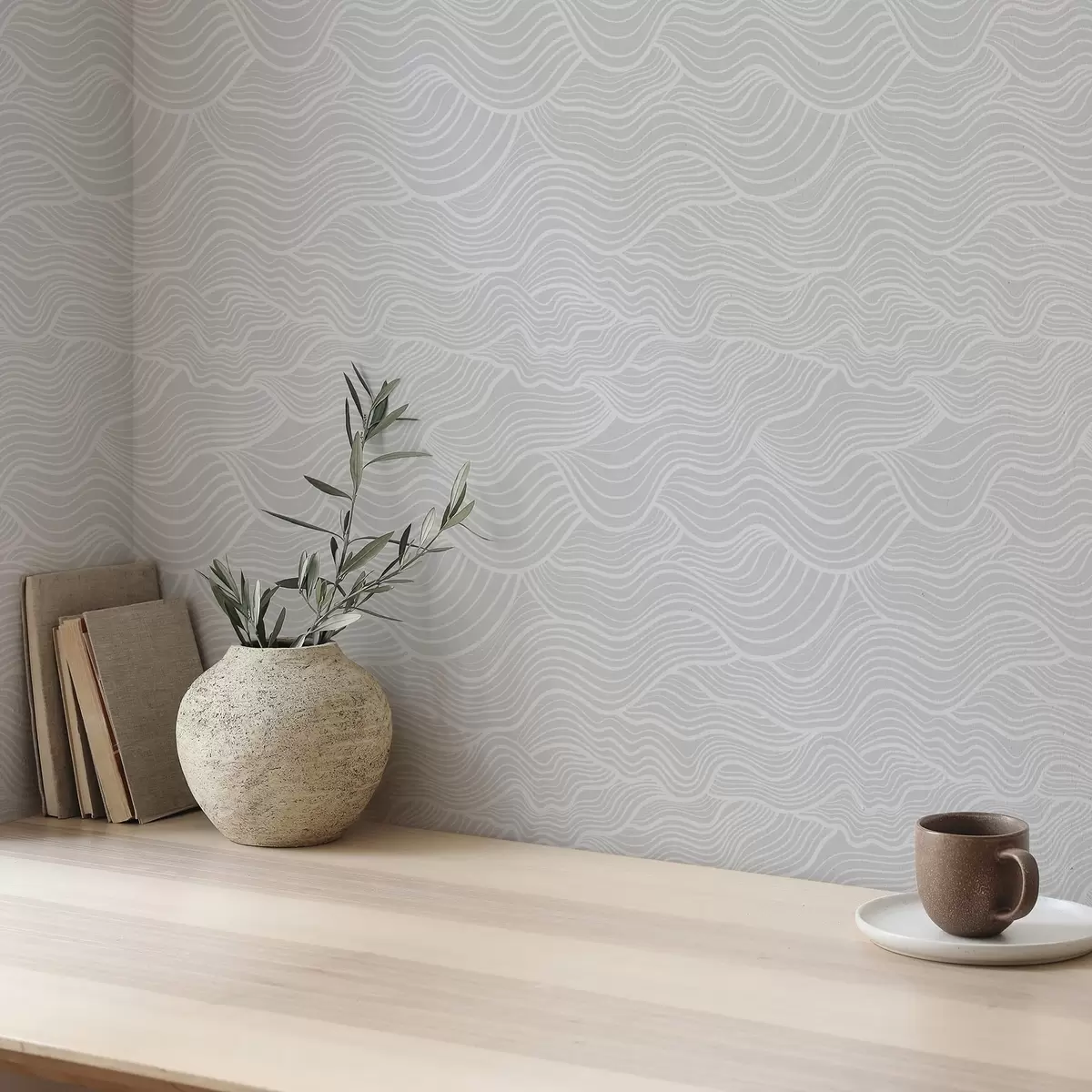 Papel tapiz Adorno ondulado: líneas claras sobre fondo gris Nr. a00681v2