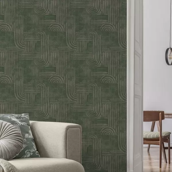 Papel tapiz Diseño geométrico con arcos en una paleta de colores verdes Nr. a00697