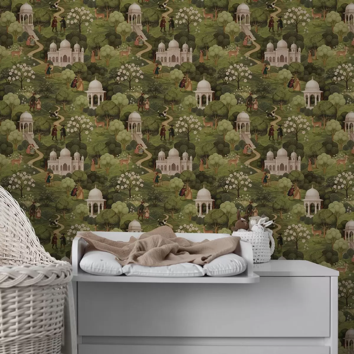 Papel tapiz Escena de parque con árboles y arquitectura en estilo paisajístico Nr. a00705