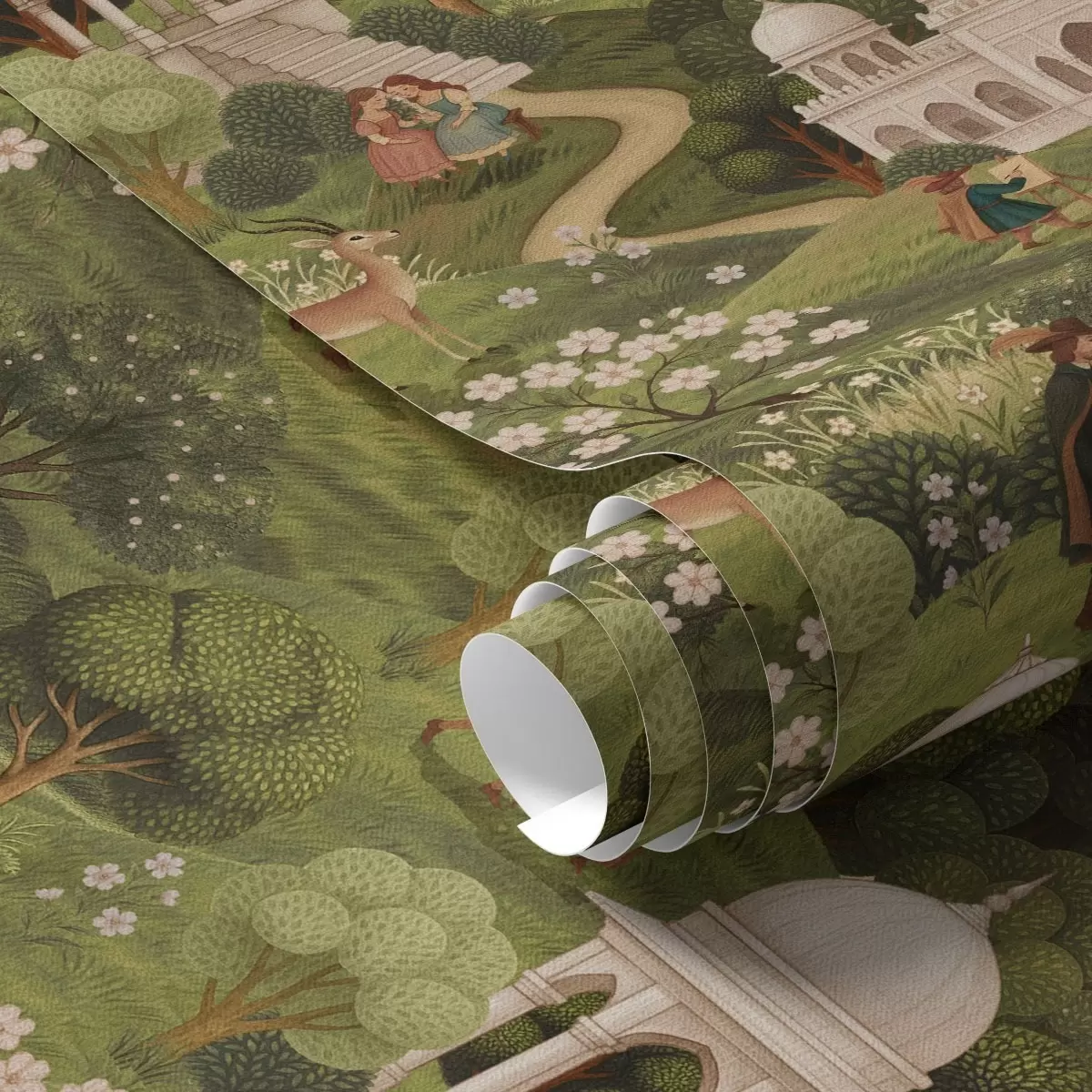 Papel tapiz Escena de parque con árboles y arquitectura en estilo paisajístico Nr. a00705