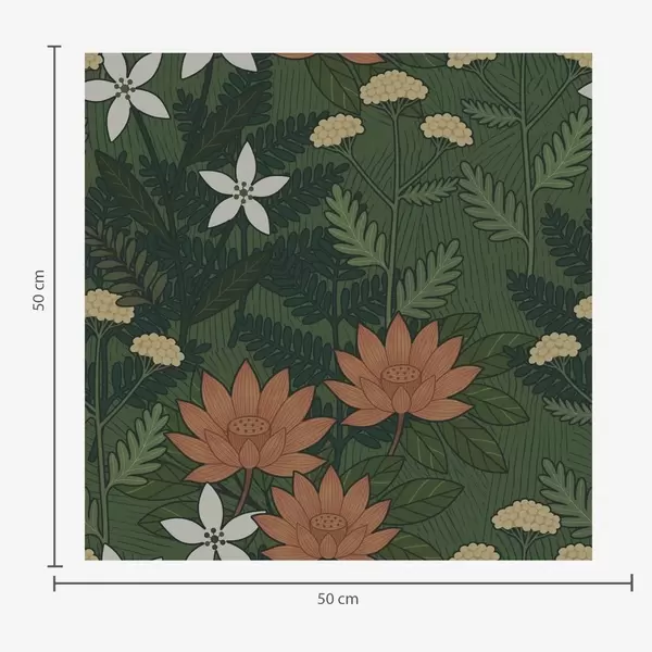 Papel tapiz Grandes flores entre follaje verde, composición decorativa Nr. a00708