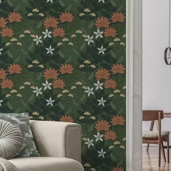 Papel tapiz Grandes flores entre follaje verde, composición decorativa Nr. a00708