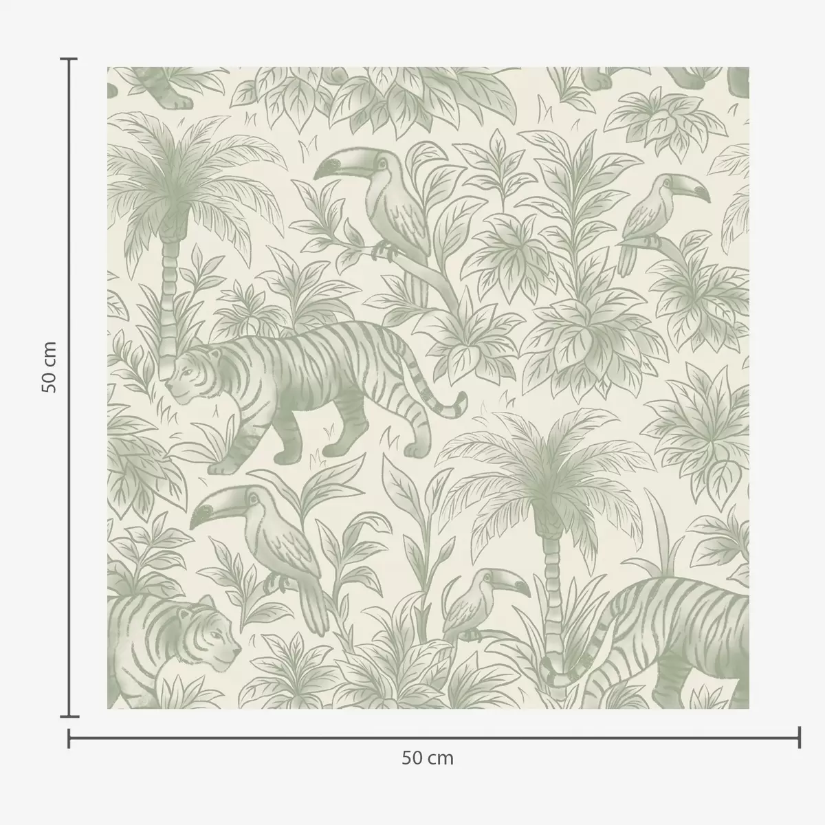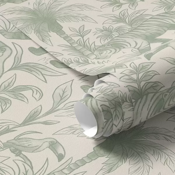 Papel tapiz Tigres y aves tropicales entre palmeras sobre un fondo claro Nr. a00711