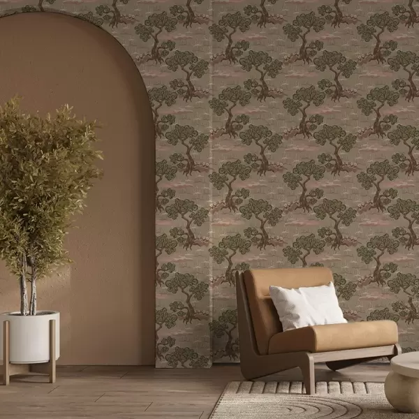 Papel tapiz Paisaje oriental con árboles caprichosos sobre un fondo arenoso Nr. a00715