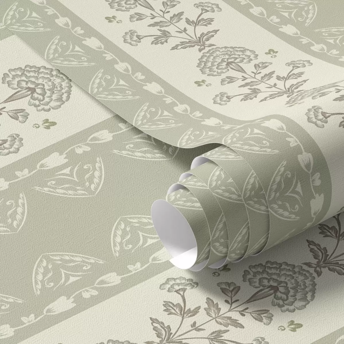 Papel tapiz Adorno rayado con columnas florales en tonos salvia Nr. a00719