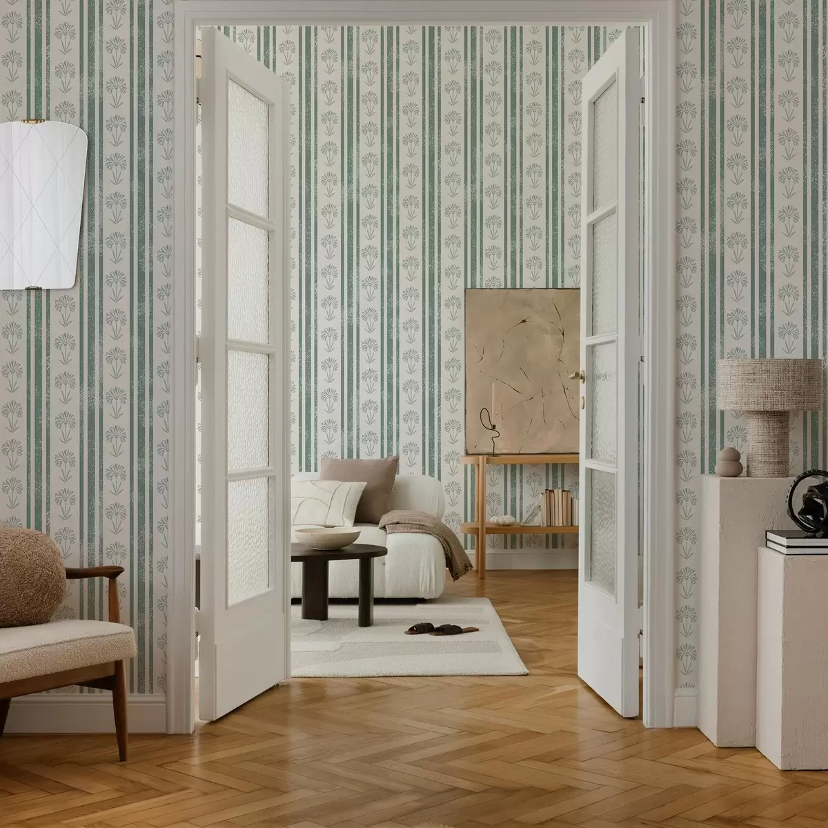 Papel tapiz Patrón de cinta con flores en tonos verdes Nr. a00732