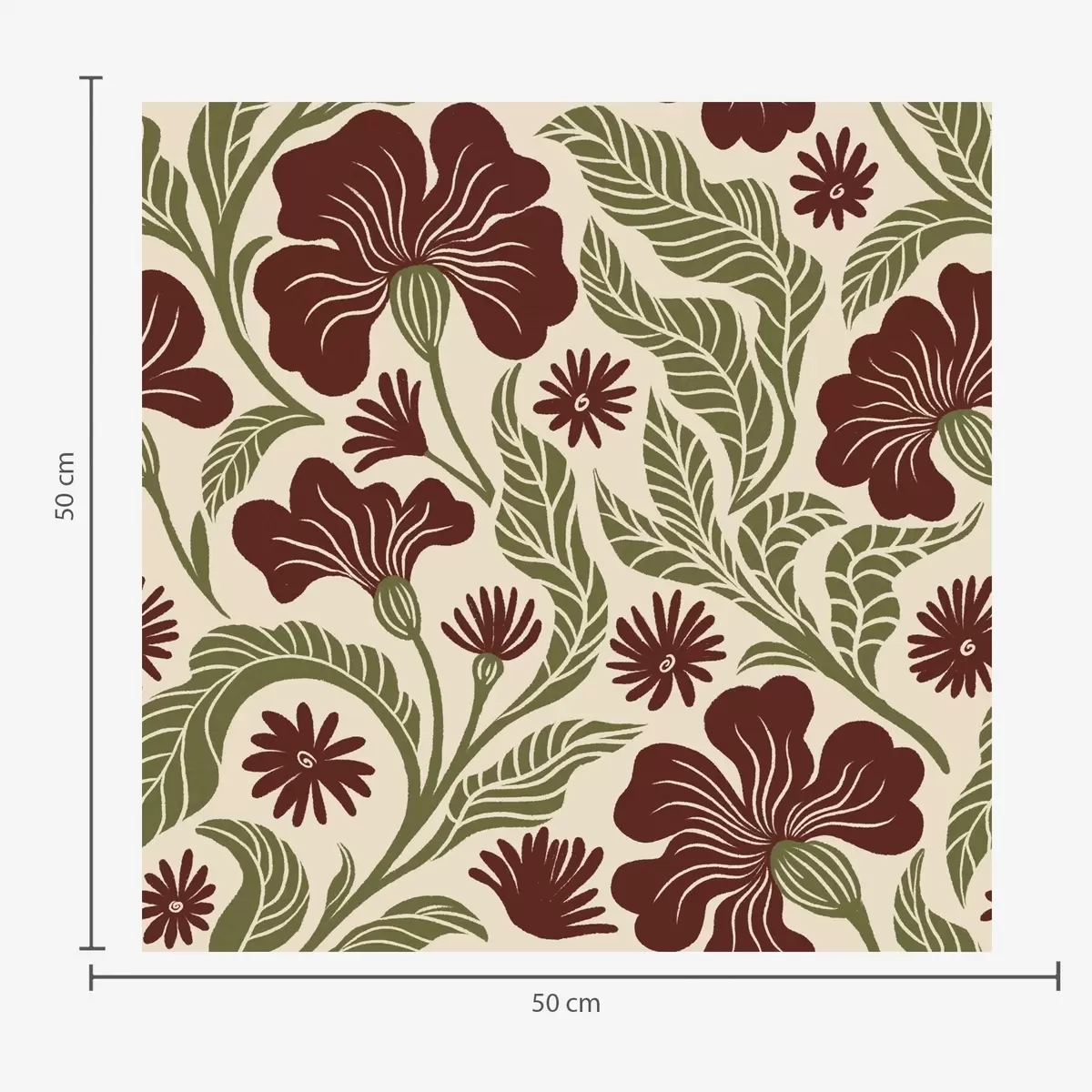 Papel tapiz Flores de color burdeos con hojas verdes sobre fondo claro Nr. a00761