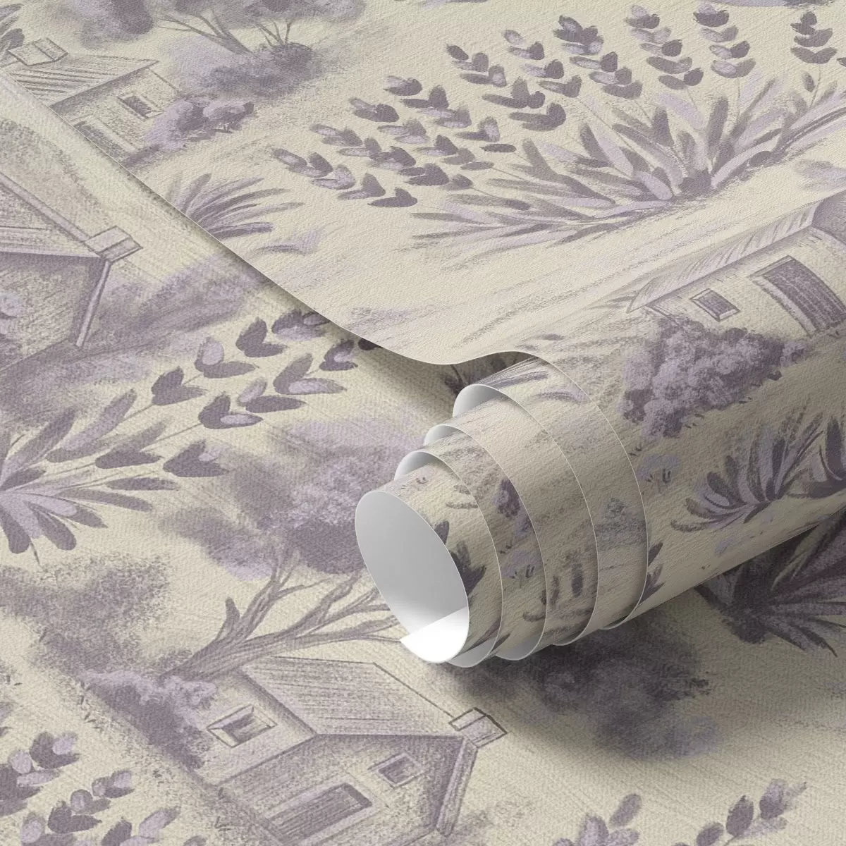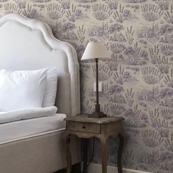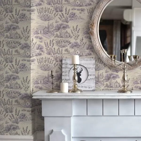 Papel tapiz Campos de lavanda y casas en tonos pastel Nr. a00765