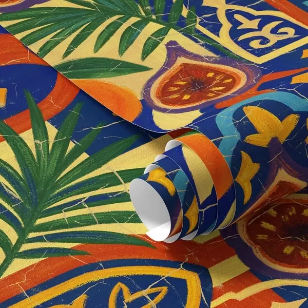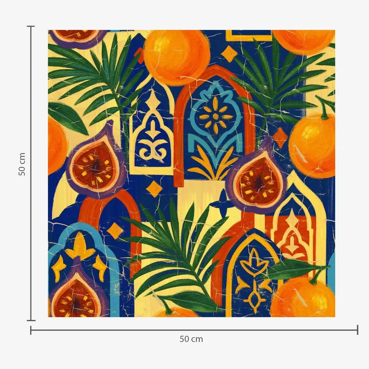 Papel tapiz Naranjas brillantes, hojas de palmera y arcos marroquíes Nr. a00767