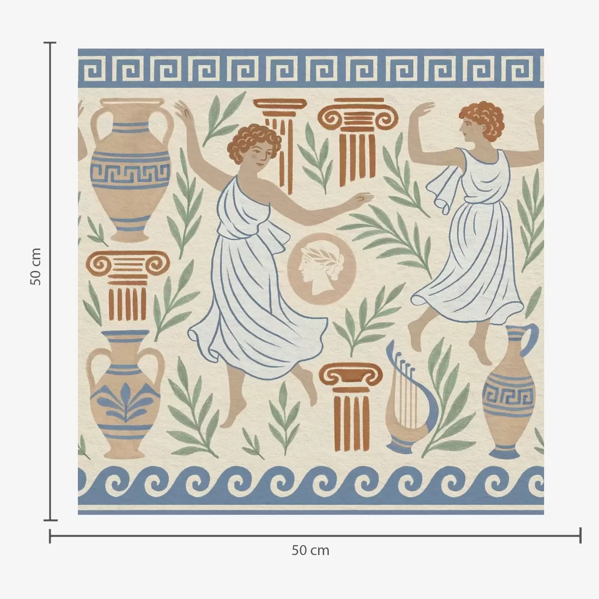 Papel tapiz Adorno griego antiguo con figuras, jarrones y columnas Nr. a00768