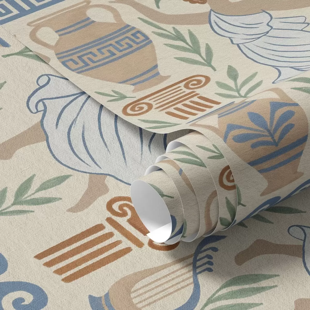 Papel tapiz Adorno griego antiguo con figuras, jarrones y columnas Nr. a00768
