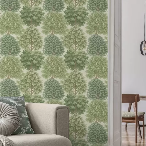 Papel tapiz Jardín de árboles en suaves tonos verdes sobre un fondo claro Nr. a00775